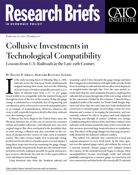 This research brief is based on Daniel P. Gross, “Collusive Investments in Technological Compatibility: Lessons from U.S. Railroads in the Late 19th Century,” Management Science, forthcoming, https://www.nber.org/papers/w26261.