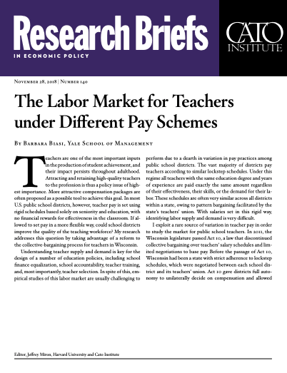 This research brief is based on Barbara Biasi, “The Labor Market for Teachers under Different Pay Schemes,” NBER Working Paper no. 24813, July 2018, http://www.nber.org/papers/w24813.