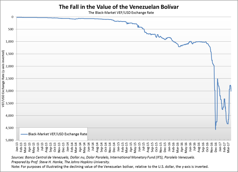 Hanke, Steve H, and Charles Bushnell. "Venezuela Enters the Record Book: The 57th Entry In The Hanke-Krus World Hyperinflation Table." The Johns Hopkins Institute for Applied Economics, Global Health, and the Study of Business Enterprise, Studies in Applied Economics working paper no. 69. December 2016.